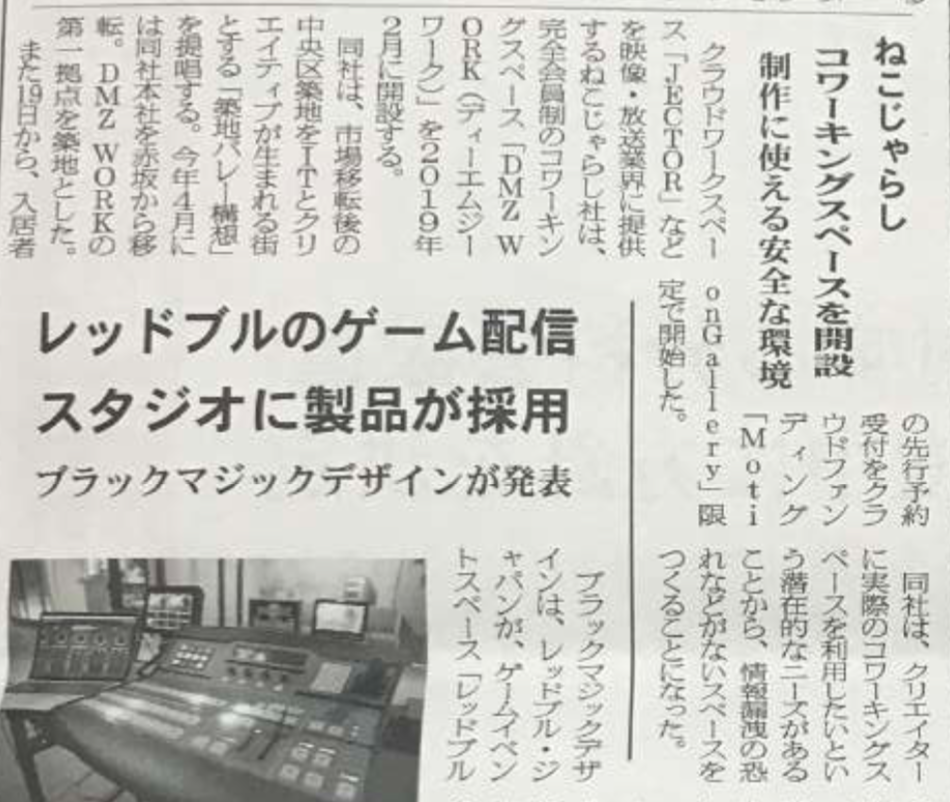 テレビ東京 「ワールドビジネスサテライト」「モーニングサテライト」にてクリエイター向けコワーキングスペース「DMZ WORK」および「築地バレー構想」が取り上げられ、放映されました。